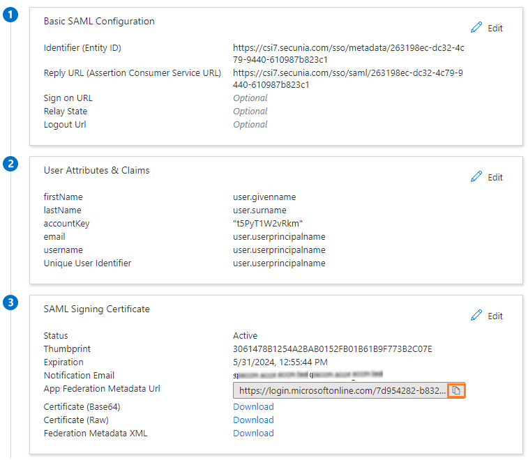 noteWhile selecting accountKey attributes paste the generated Account key which is copied from the Software Vulnerability Manager Configuration > Settings > IdP Configuration Instructions.