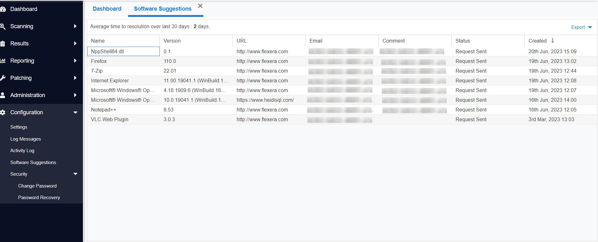| Pending Review | Indicates that the suggested software review in pending. |