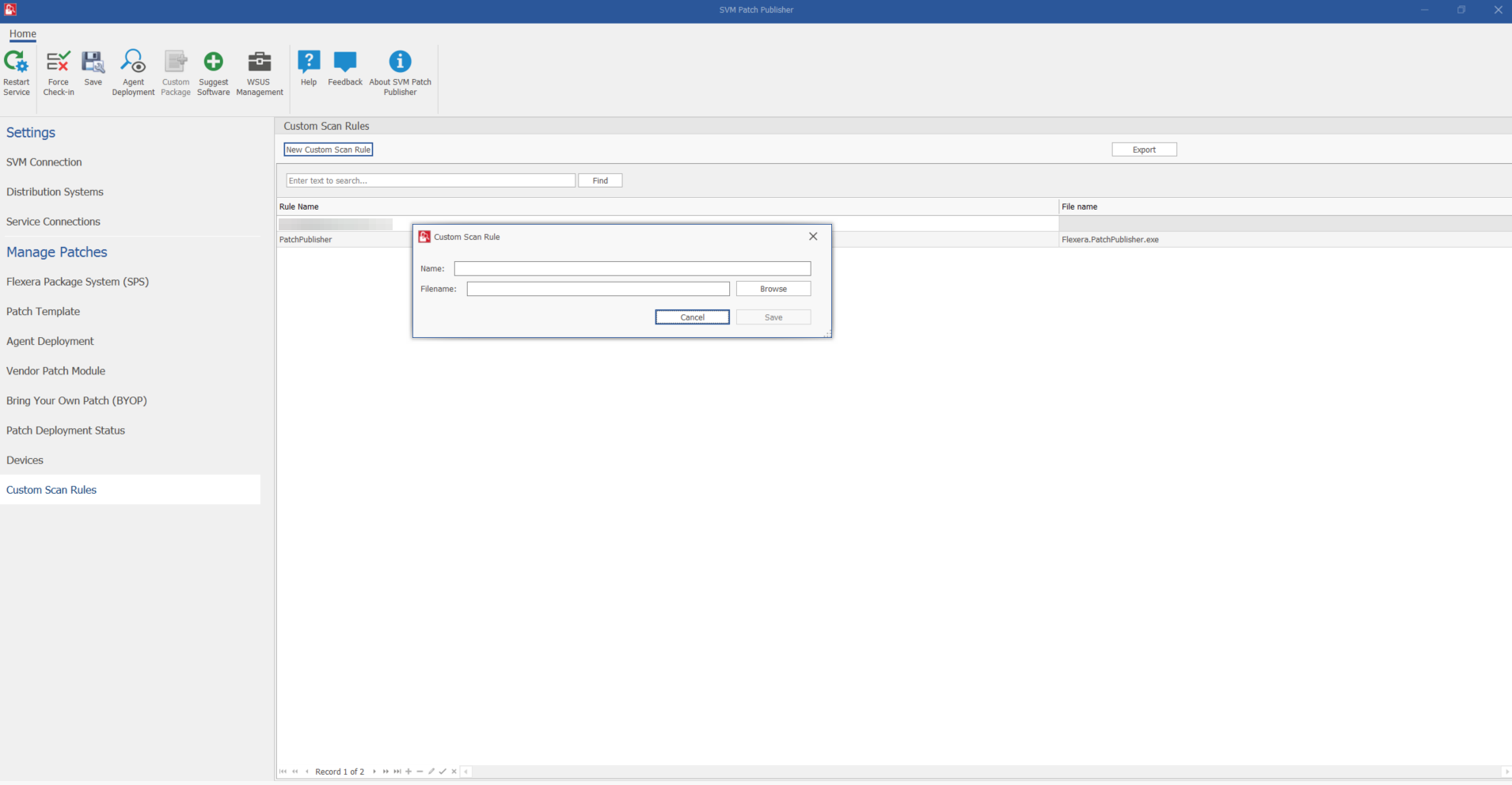 1. On Manage Patches menu, click Custom Scan Rules in the left pane.