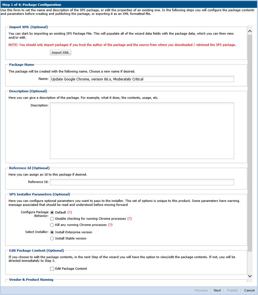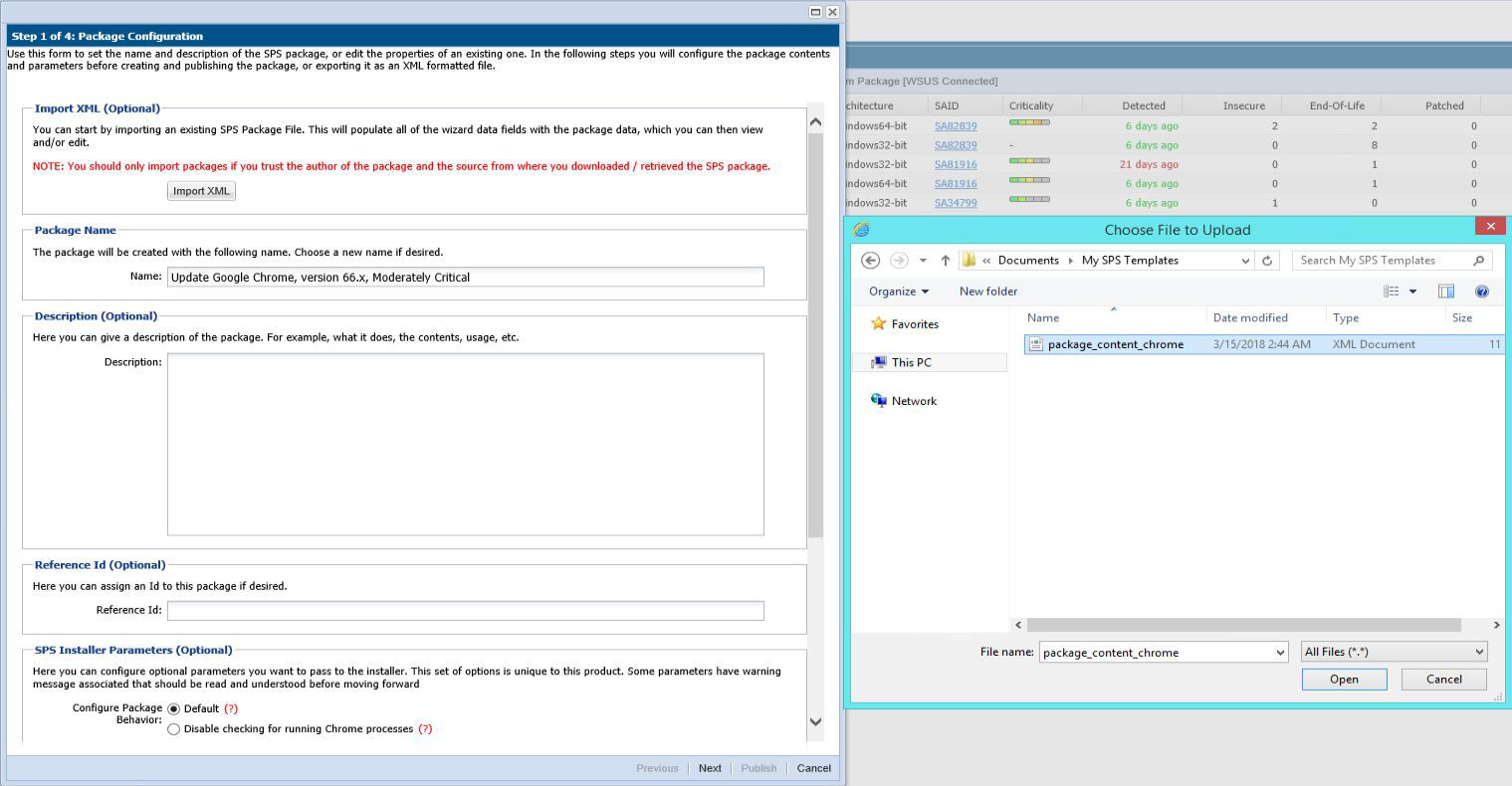 The Import Package feature allows you to import a SPS template in XML format that will automatically populate all the fields of the SPS Package Creation Wizard. This feature will be especially relevant when creating custom updates or when creating update packages for the products in gray.