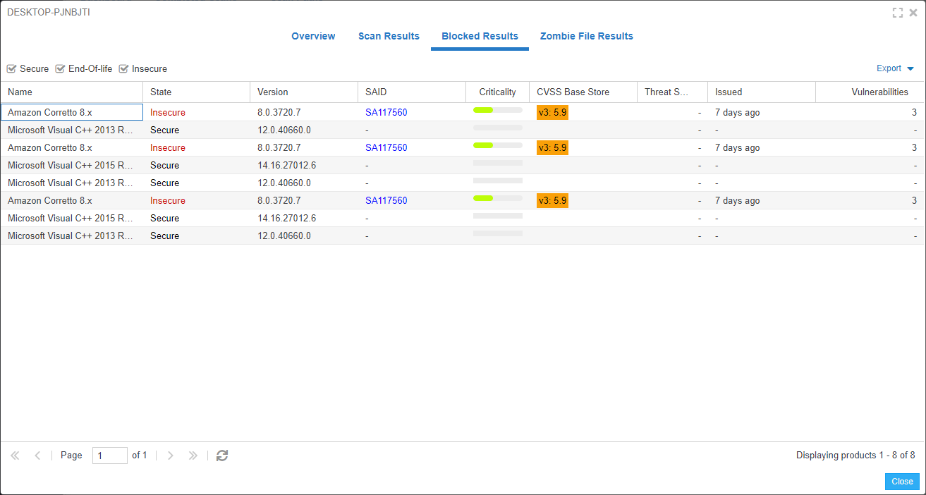In the Scan Results tab, you can view installations details of the product, and you can add desired product to the Block List.